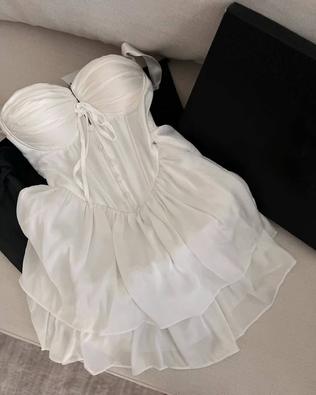 Современная модель с имитацией корсета, с чашками в длине мини.