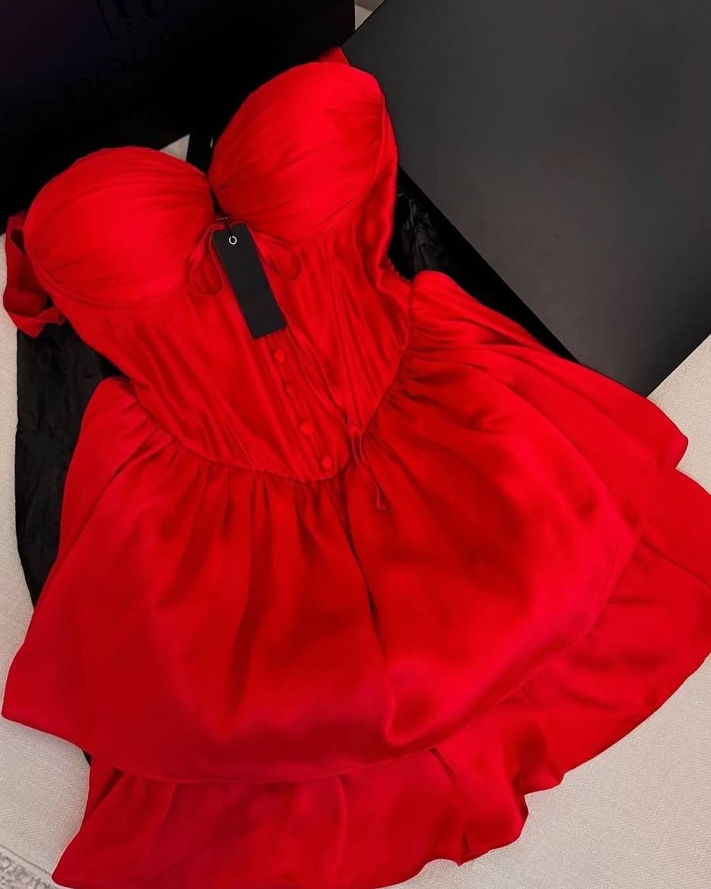 Современная модель с имитацией корсета, с чашками в длине мини.