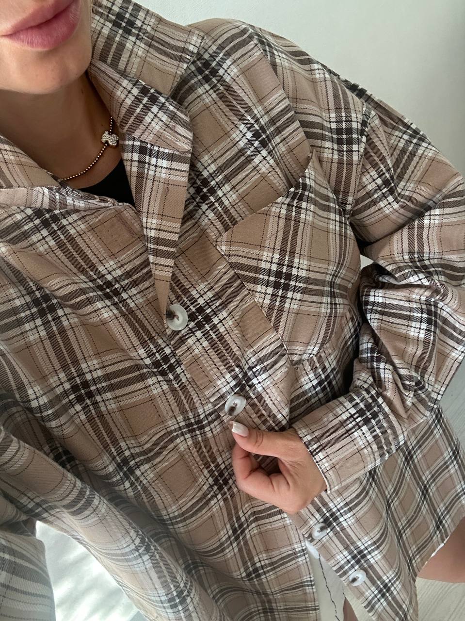 Рубашка оверсайз оригинального кроя (фланель) бежевая клетка
