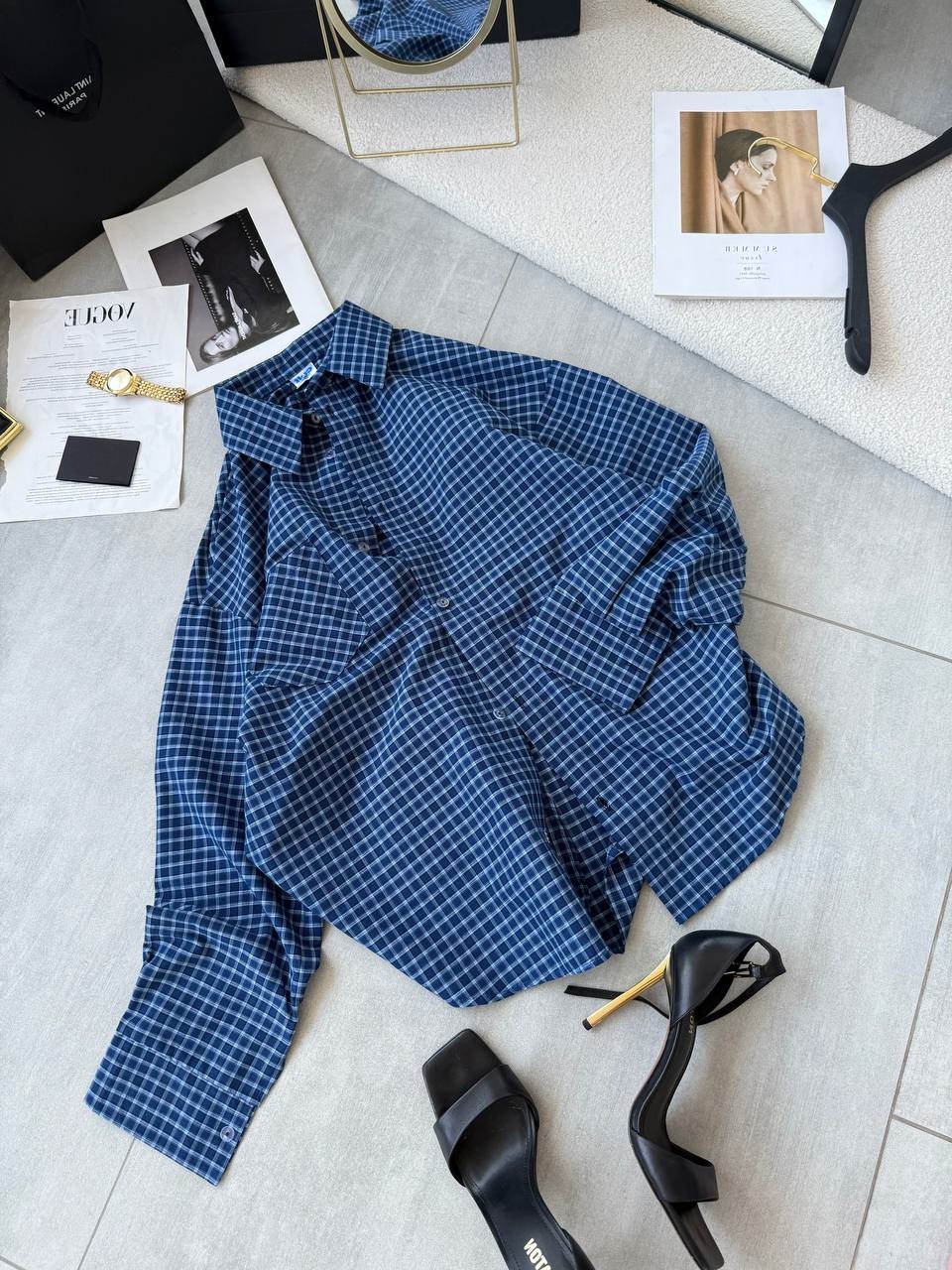 Рубашка в клетку в стиле MIU MIU Oversize крой синий