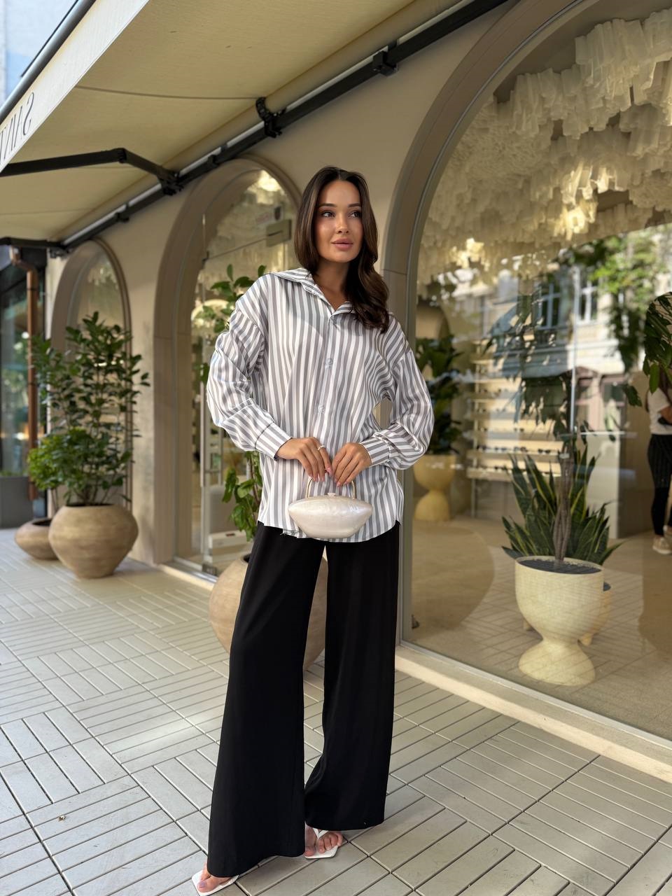 Стильная рубашка в полоску идеально подойдет под ваш любимый образ.