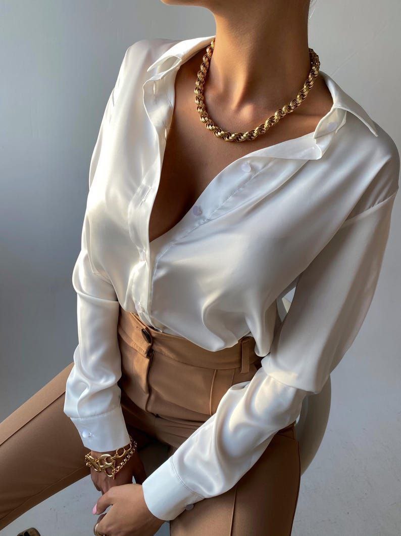 Эта рубашка станет отличным дополнением как к повседневным, так и к вечерним образам. Хорошо сочетается с брюками, юбками или джинсами.
