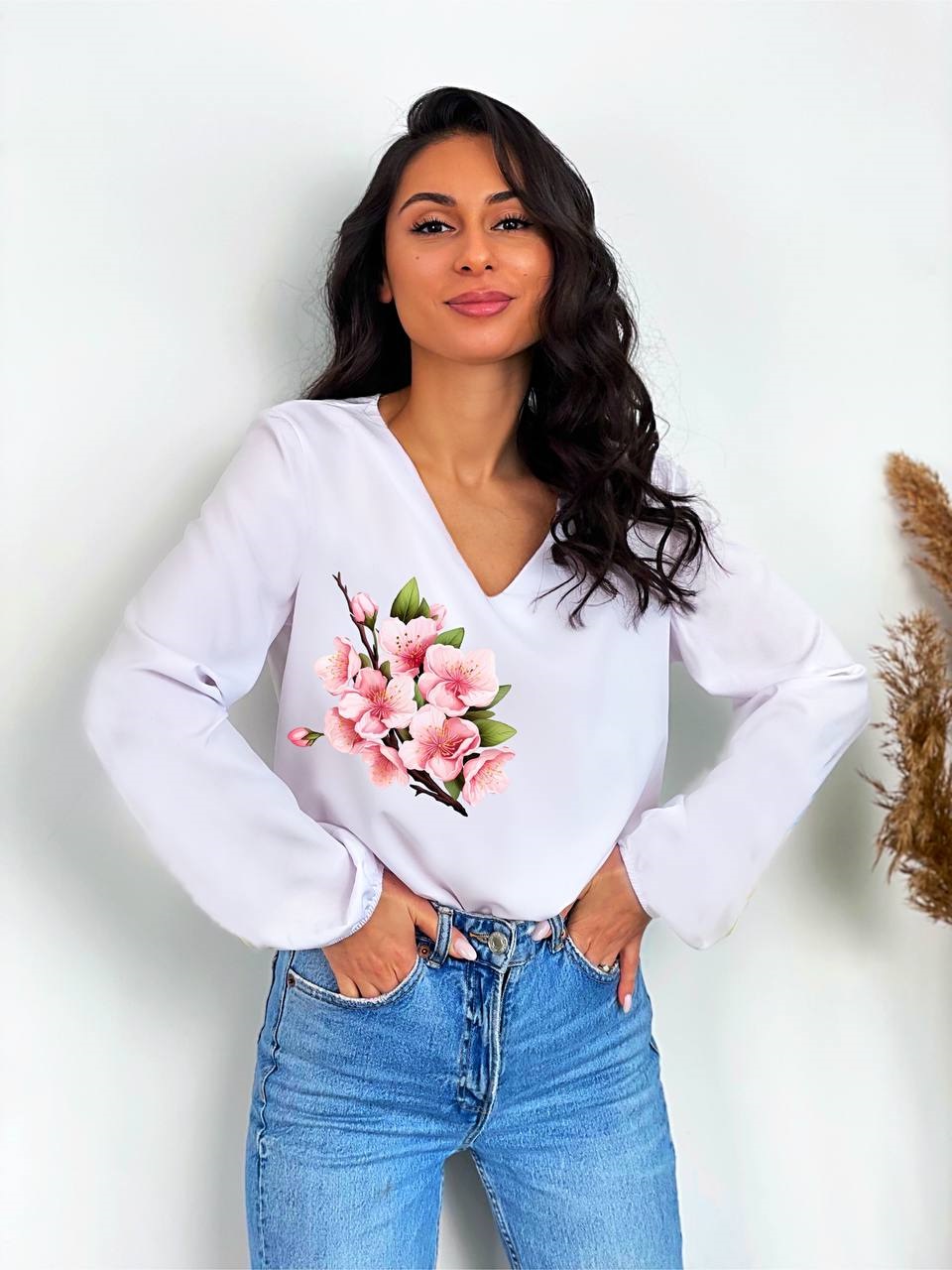 Головна » Магазин » ОДЕЖДА » БЛУЗЫ ТОП БОДИ КОРСЕТЫ » Шелковистая блуза с розовым букетом белый