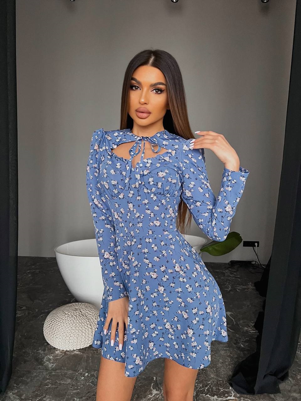 Головна » Магазин » ОДЕЖДА » ПЛАТЬЯ ТУНИКИ САРАФАНЫ » Шелковистое платье длиной мини с расклешенной юбкой в цветочный принт голубой