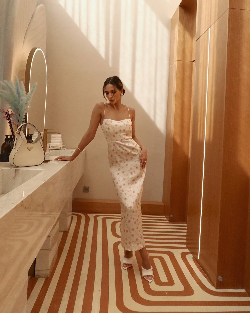 Головна » Магазин » ОДЕЖДА » ПЛАТЬЯ ТУНИКИ САРАФАНЫ » Шелковистое платье в цветочный принт на бретелях длиной макси молочный+розовый цветок