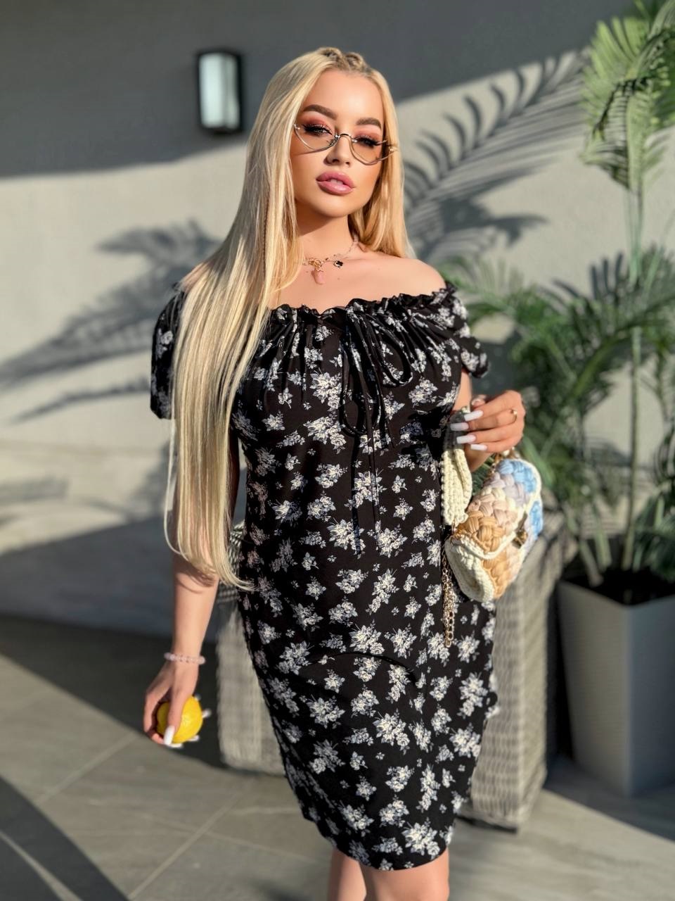 Головна » Магазин » ОДЕЖДА » ПЛАТЬЯ ТУНИКИ САРАФАНЫ » Шелковистое платье в длине мини с акцентом в форме завязки на груди черный с белыми цветами