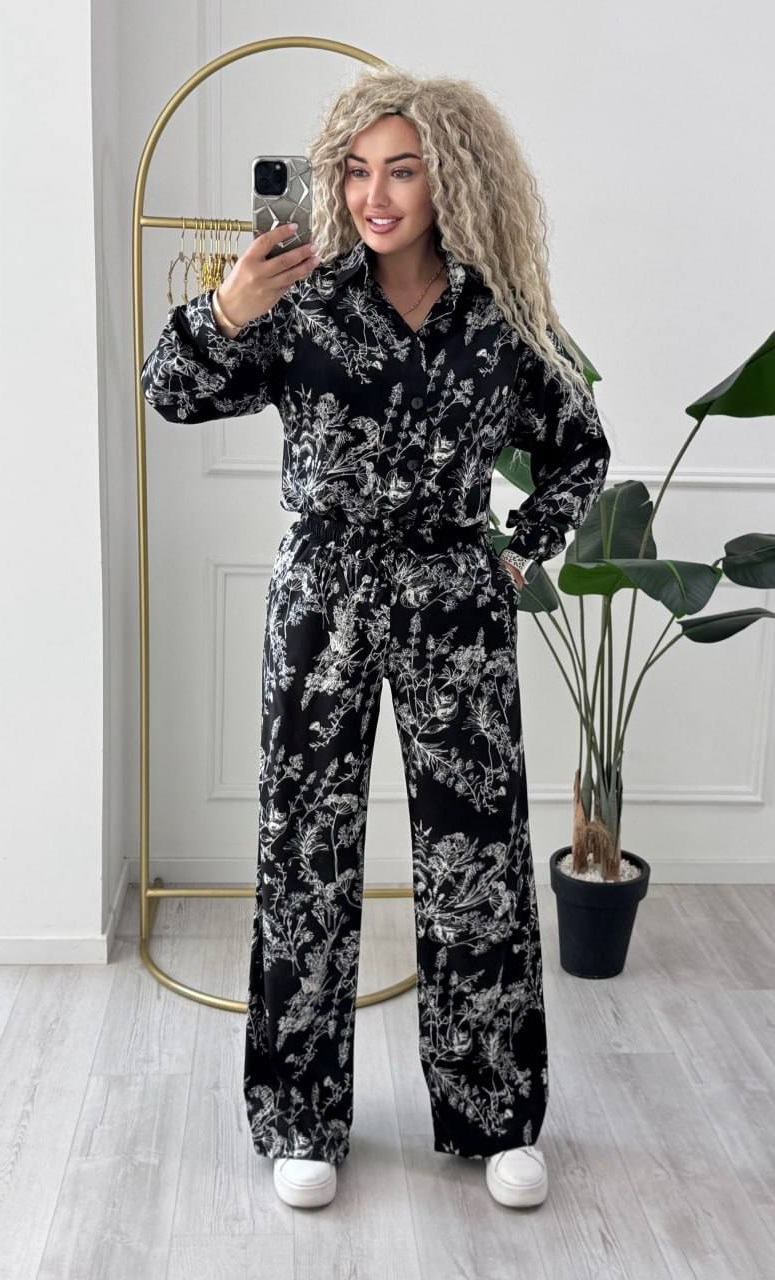 Описание : костюм двойка, брюки палаццо + рубашка свободного кроя, на поясе есть шнурок