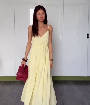Головна » Магазин » ОДЕЖДА » ПЛАТЬЯ ТУНИКИ САРАФАНЫ » Шелковистый сарафан длиной макси с воланом по низу желтый