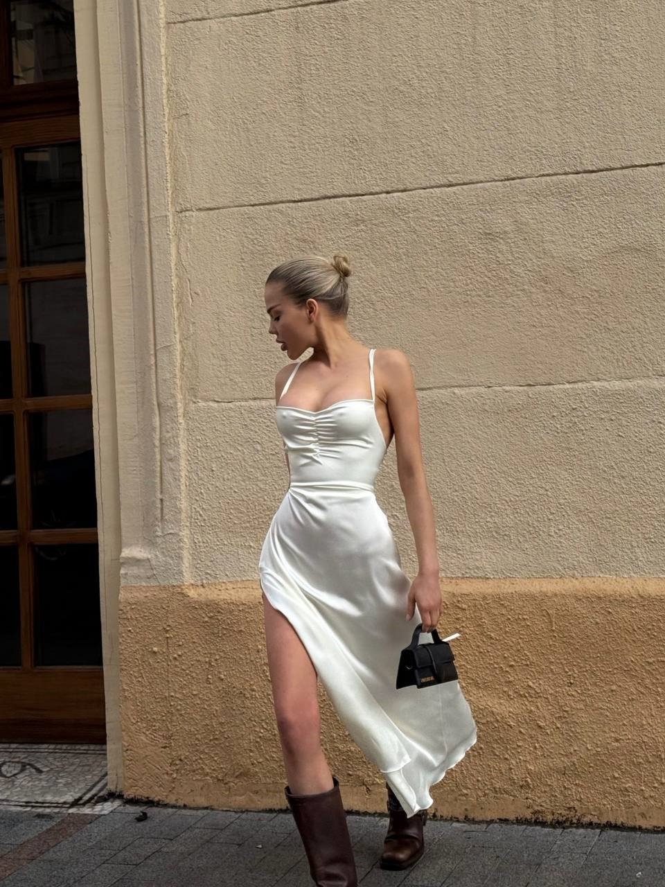 Будьте первым, кто оставил отзыв на “Шелковое платье на бретелях с высоким разрезом молочный”