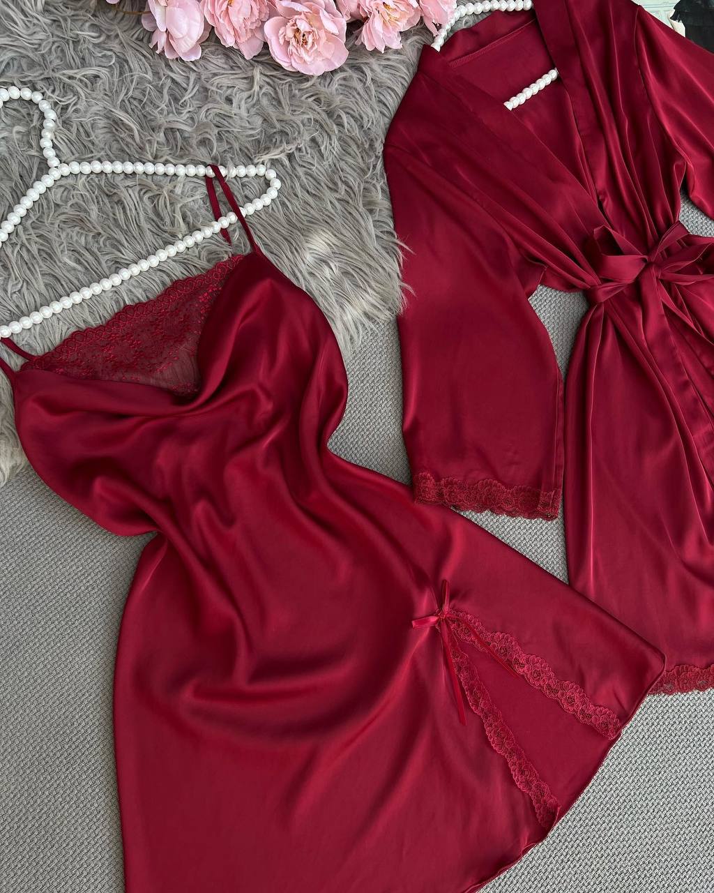 Шелковый комплект с кружевом: халат+платье, чтобы почувствовать себя королевой дома.