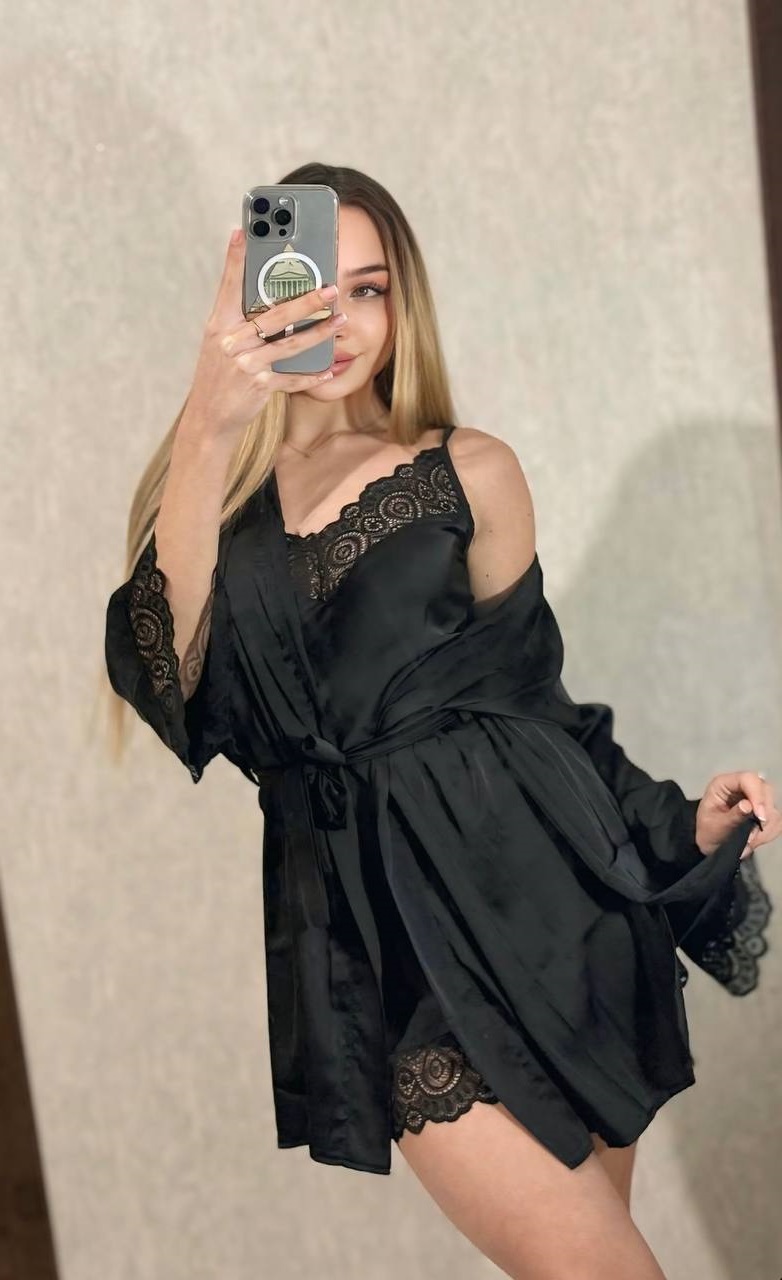 Головна » Магазин » ОДЕЖДА » ПИЖАМЫ И ДОМАШНИЕ КОСТЮМЫ » Шелковый комплект (рубашка на бретелях+халат) длиной мини черный