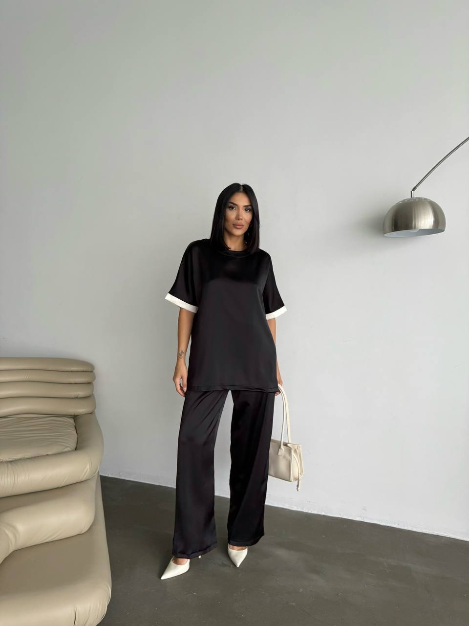 Будьте первым, кто оставил отзыв на “Шелковый костюм футболка+свободные брюки черный”