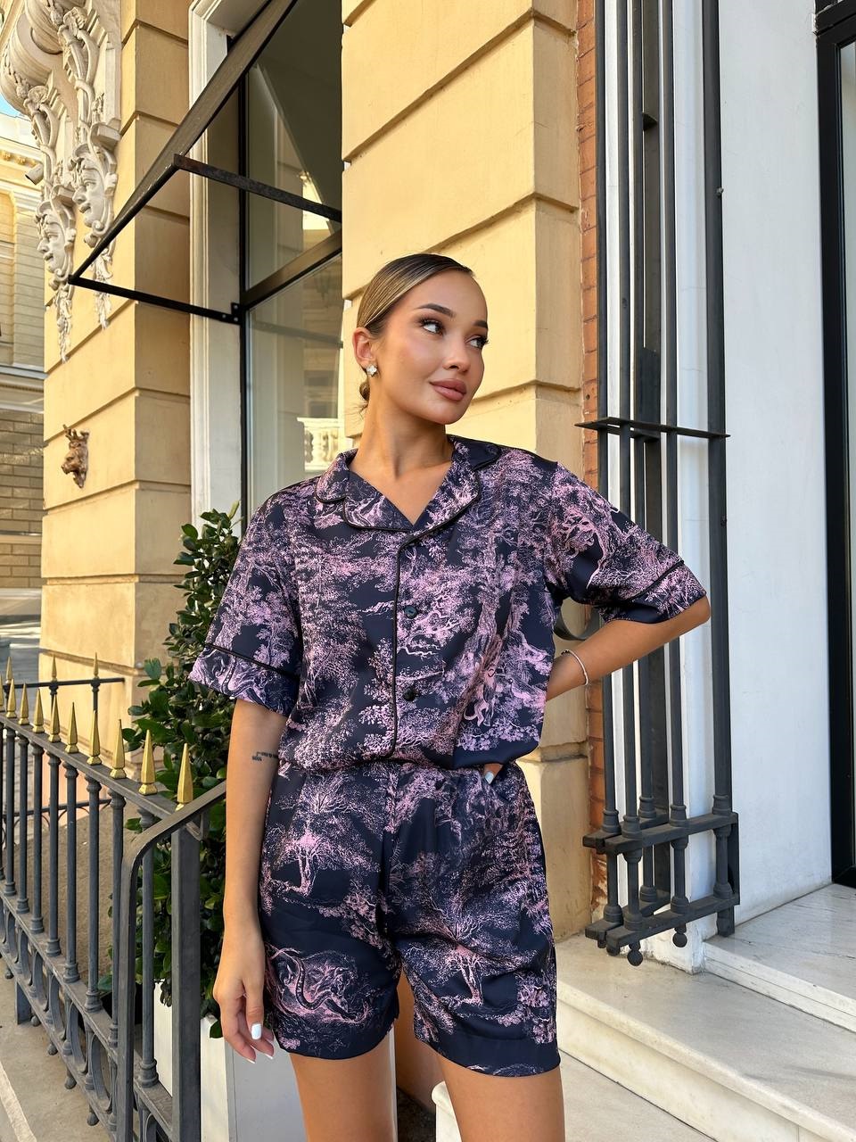 Шелковый костюм (свободные шорты с карманами+рубашка с коротким рукавом) черный