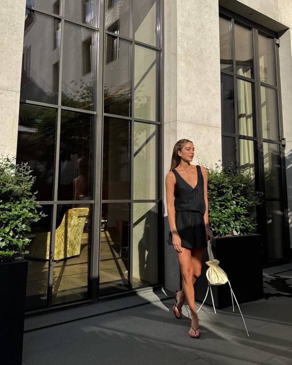 Головна » Магазин » ОДЕЖДА » ЖЕНСКИЕ КОСТЮМЫ » Шелковый костюм (топ с бантиком+шортики) черный