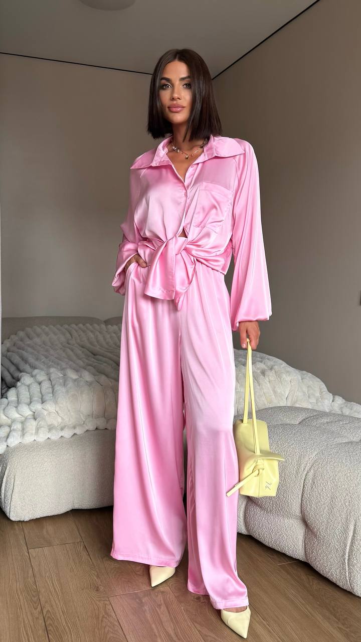 Шелковый Костюм-Тройка в стиле oversize(штаны+рубашка+платок)