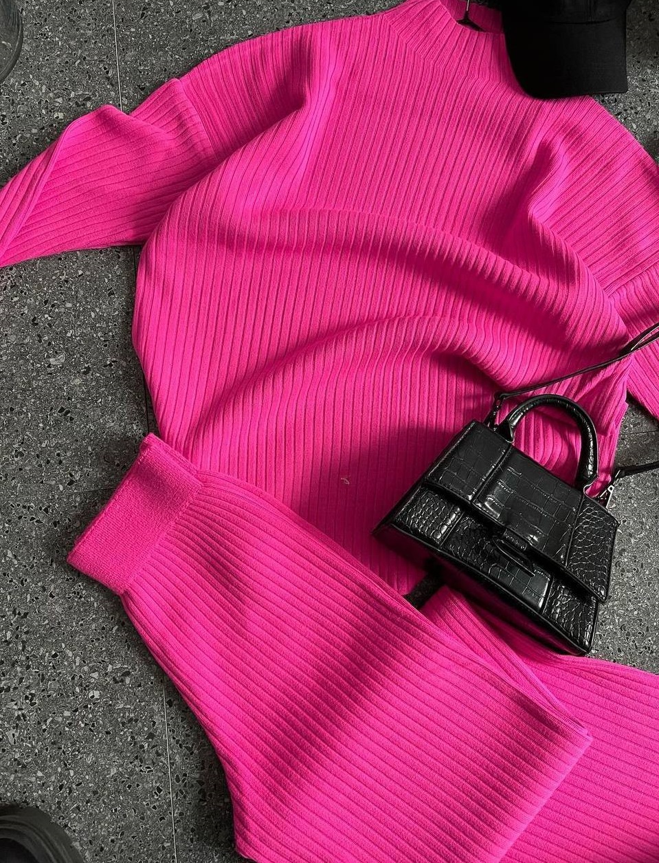 Головна » Магазин » ОДЕЖДА » ЖЕНСКИЕ КОСТЮМЫ » Шикарный костюм кофта+брюки в рубчик малина