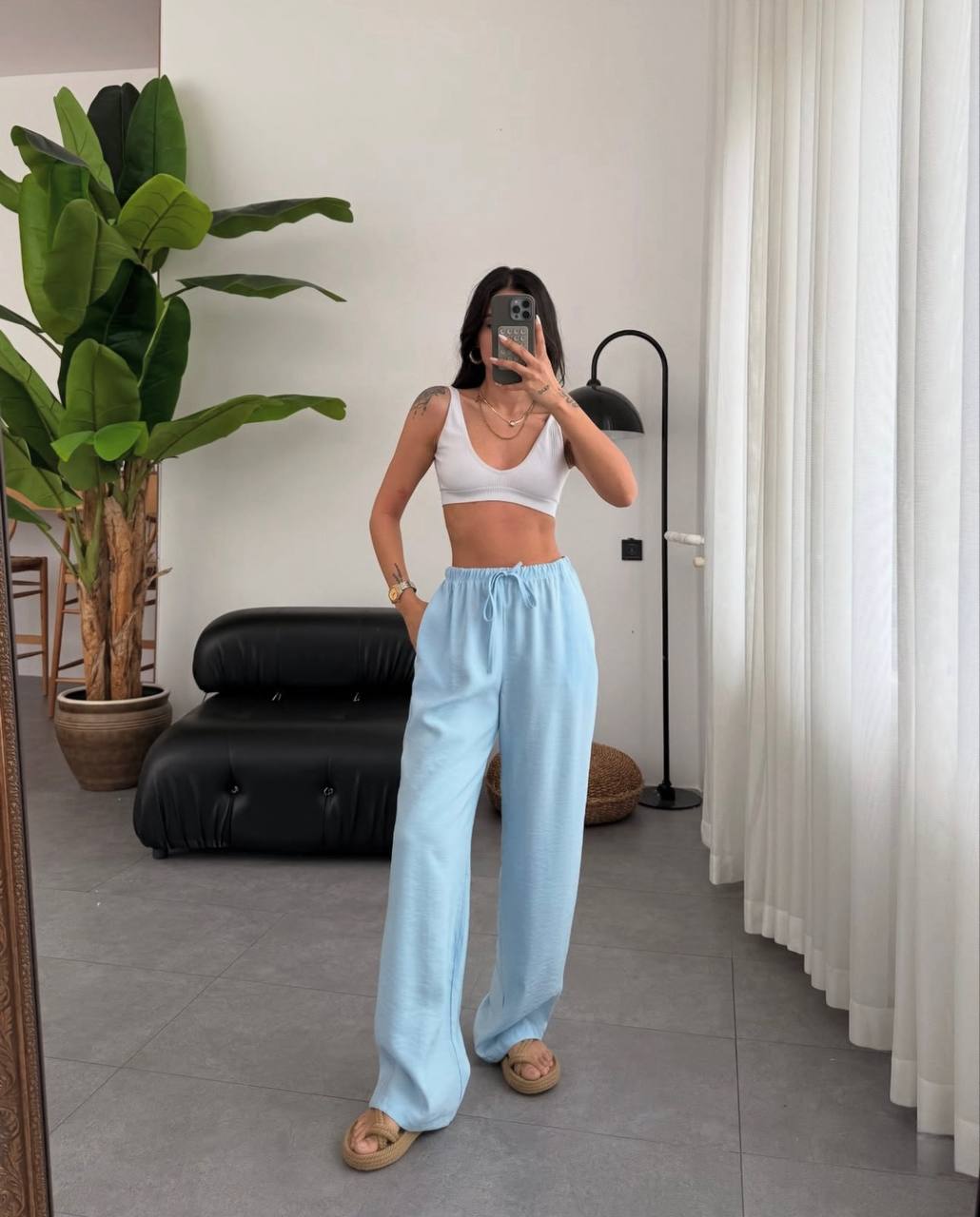 Головна » Магазин » ОДЕЖДА » ЖЕНСКИЕ ШТАНЫ ДЖИНСЫ БРЮКИ ЛОСИНЫ » Широкие и комфортные Брюки (штапель) голубой