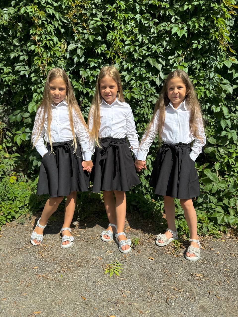 Рубашка с кружевом на рукавах и юбка с кармашками с пояском