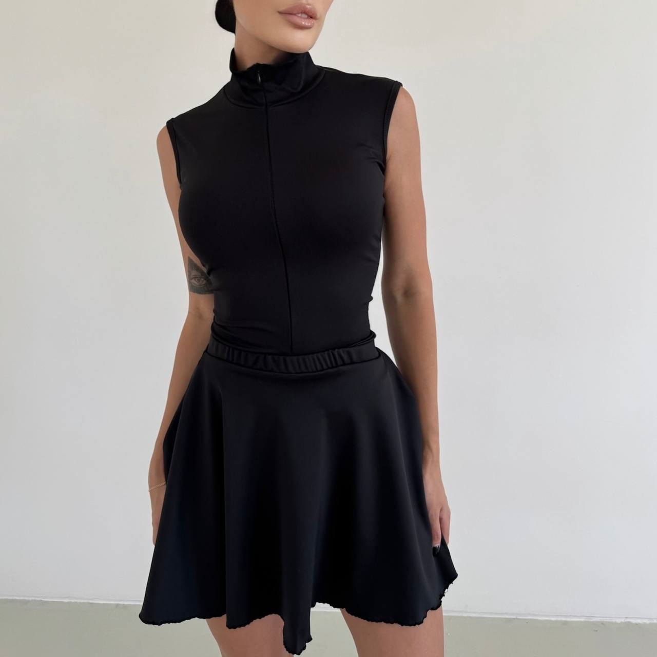 Спортивное комбо- фитнес комбинезон+юбка черный