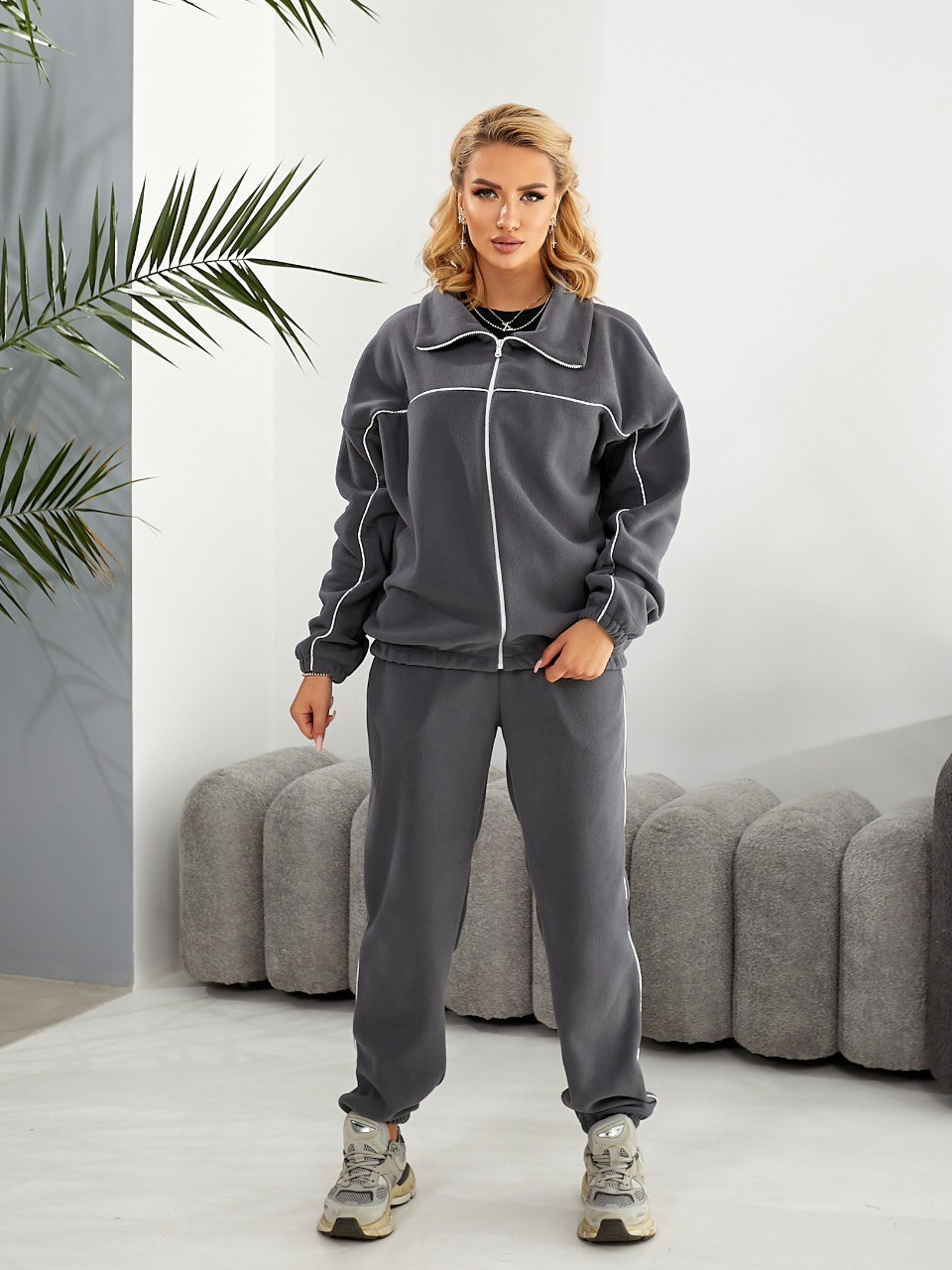 Спортивный костюм флисовый: Кофта свободного кроя+ Брюки джоггеры темно-серый