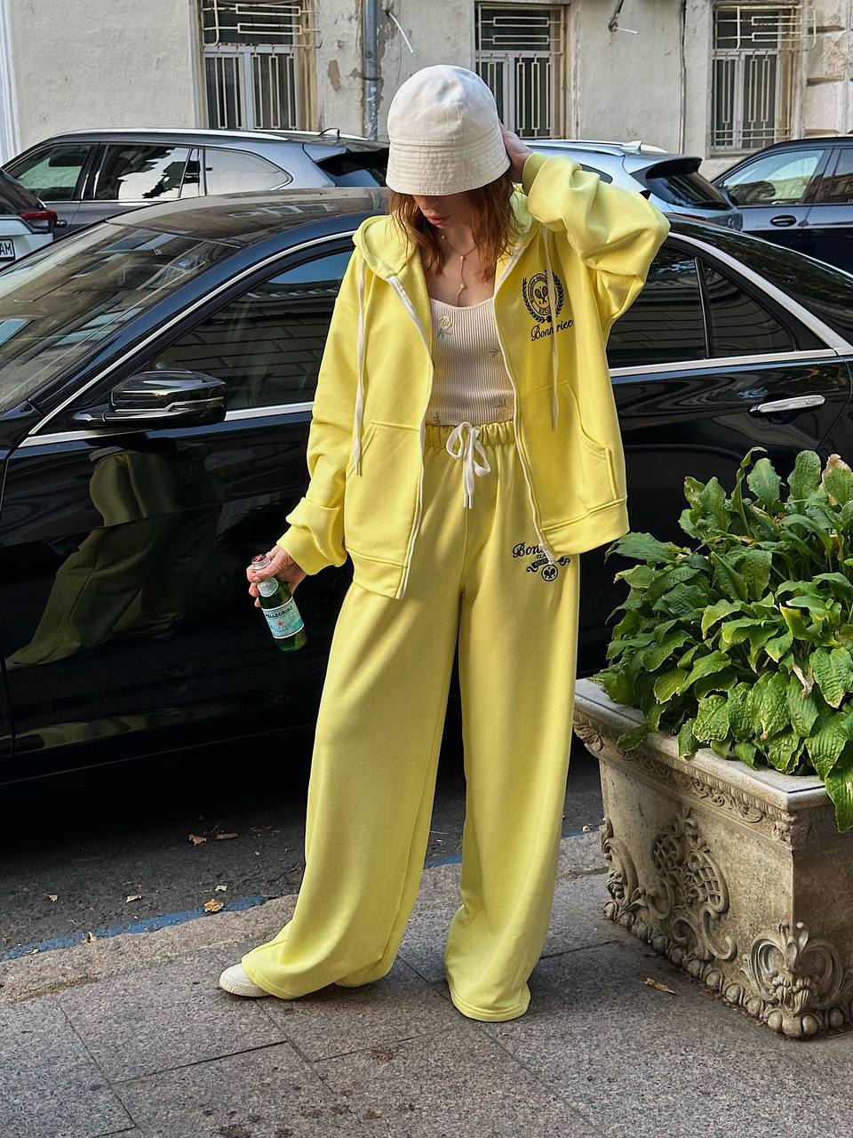 Спортивный костюм (худи с капюшоном+вышивкой+брюки свободного кроя) желтый