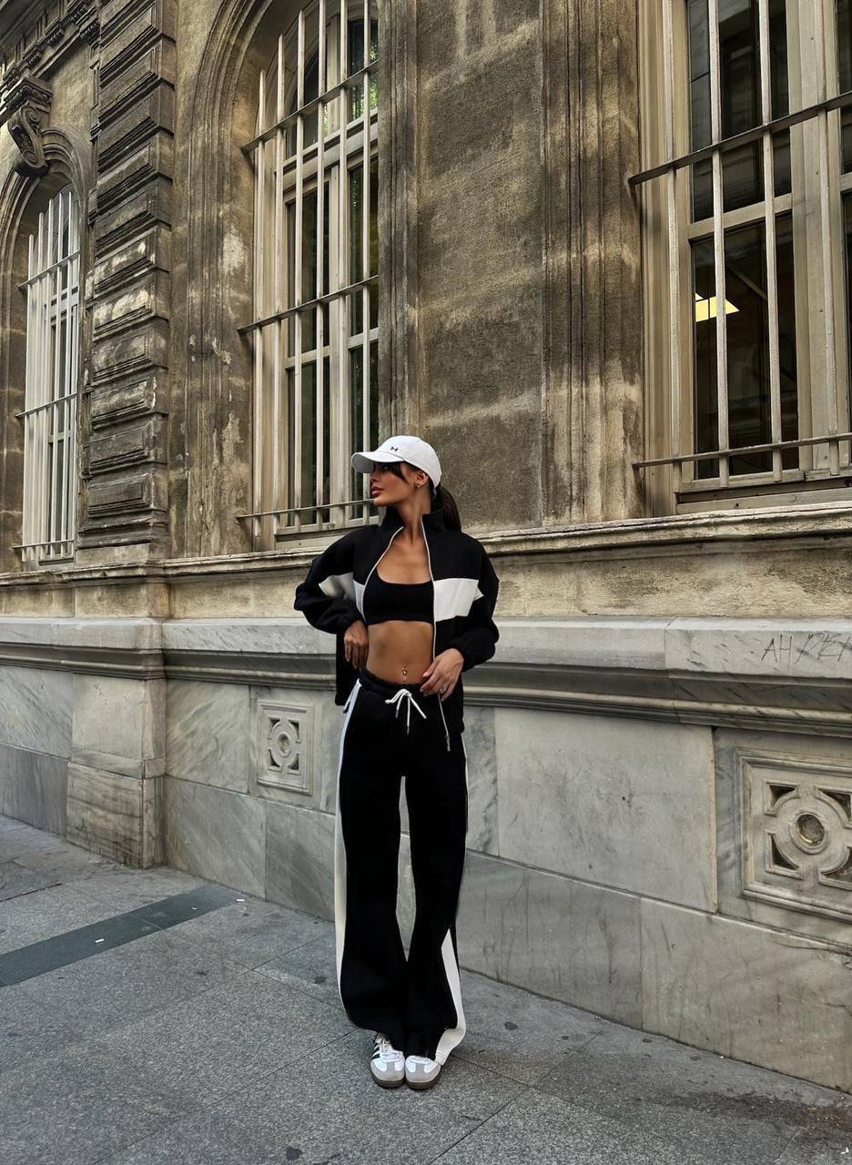 Спортивный костюм — кофта на молнии+штаны свободные черный+белый