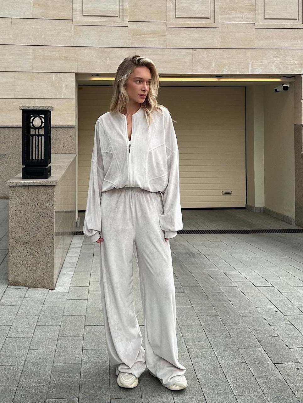 Головна » Магазин » ОДЕЖДА » ЖЕНСКИЕ СПОРТИВНЫЕ КОСТЮМЫ » Спортивный костюм (кофта с акцентными швами+свободные брюки) велюр серый
