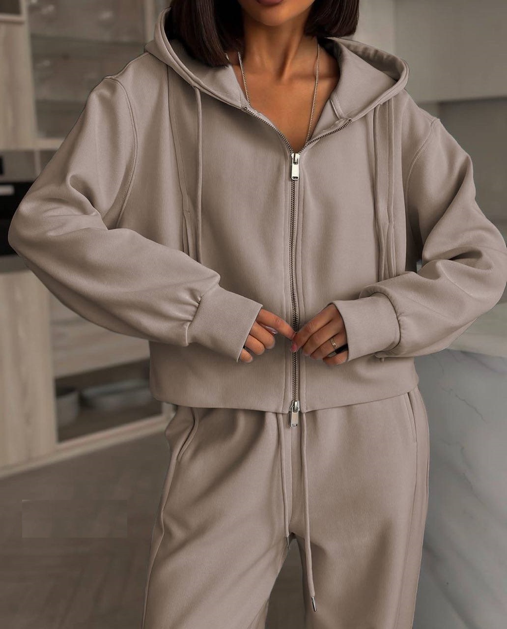 Головна » Магазин » ОДЕЖДА » ЖЕНСКИЕ СПОРТИВНЫЕ КОСТЮМЫ » Спортивный костюм (кофта с капюшоном на молнии+свободные брюки) бежевый