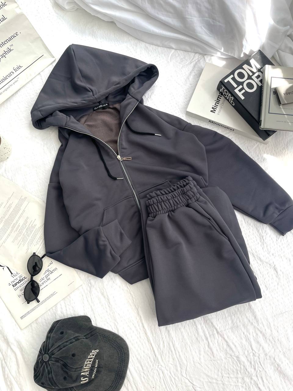 Спортивный костюм: кофта с карманами+брюки-палаццо с регулировкой по низу графит
