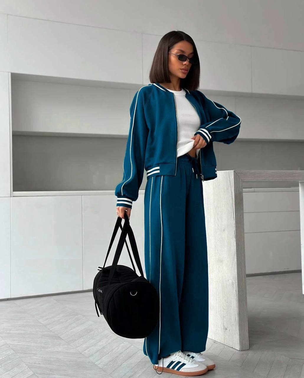 Головна » Магазин » ОДЕЖДА » ЖЕНСКИЕ СПОРТИВНЫЕ КОСТЮМЫ » Спортивный костюм: кофта с манжетами на рукавах+штаны морская волна