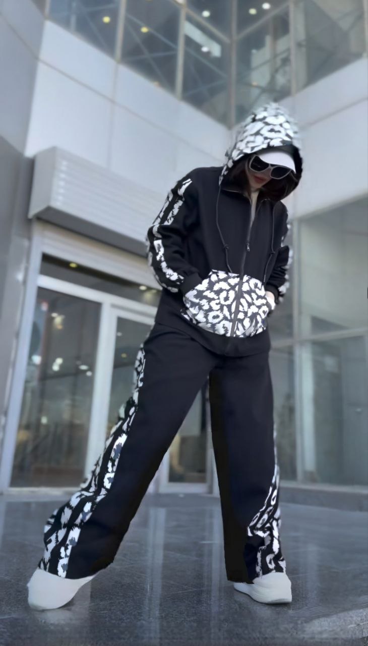 Головна » Магазин » ОДЕЖДА » ЖЕНСКИЕ СПОРТИВНЫЕ КОСТЮМЫ » Спортивный костюм оверсайз: кофта+штаны с вставками черный