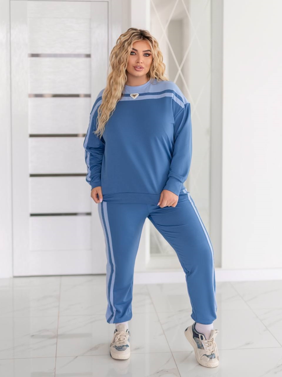 Спортивный костюм с лампасами (брюки высокая посадка на манжетах+кофта с вставками) джинс+голубой