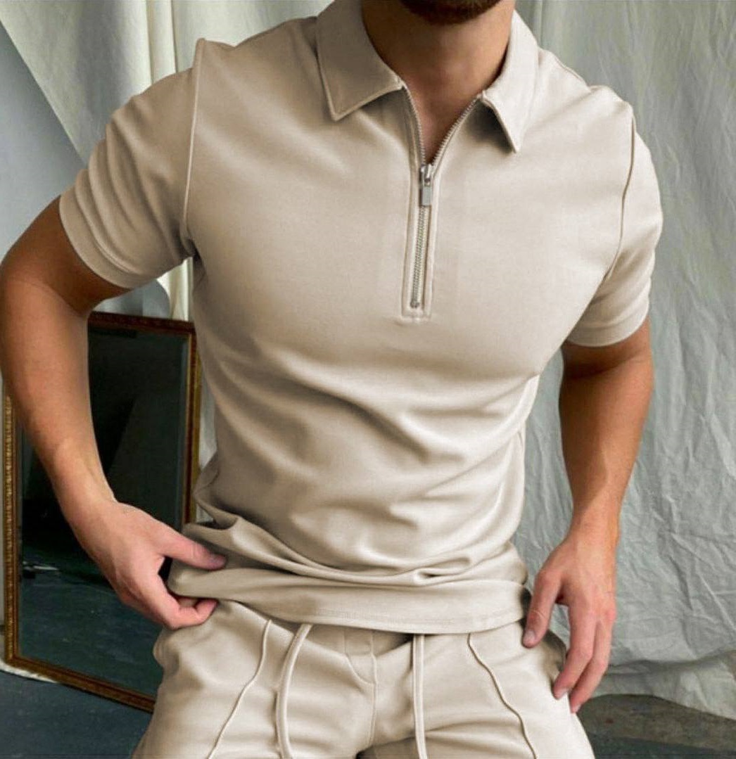 Головна » Магазин » ОДЕЖДА » МУЖСКИЕ КОСТЮМЫ » Стильный мужской костюм футболка-поло + штаны беж