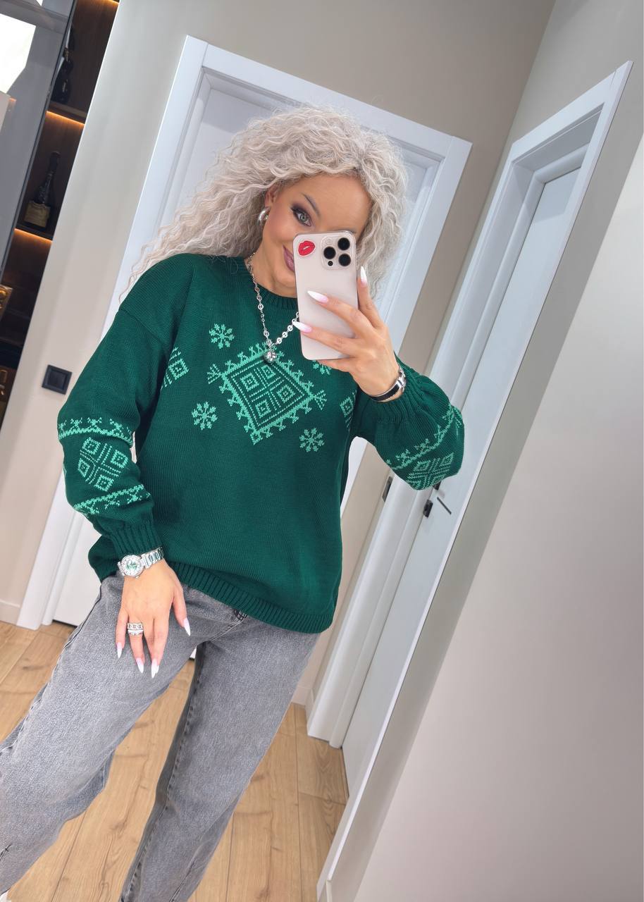 Свитер с этническим узором изумруд