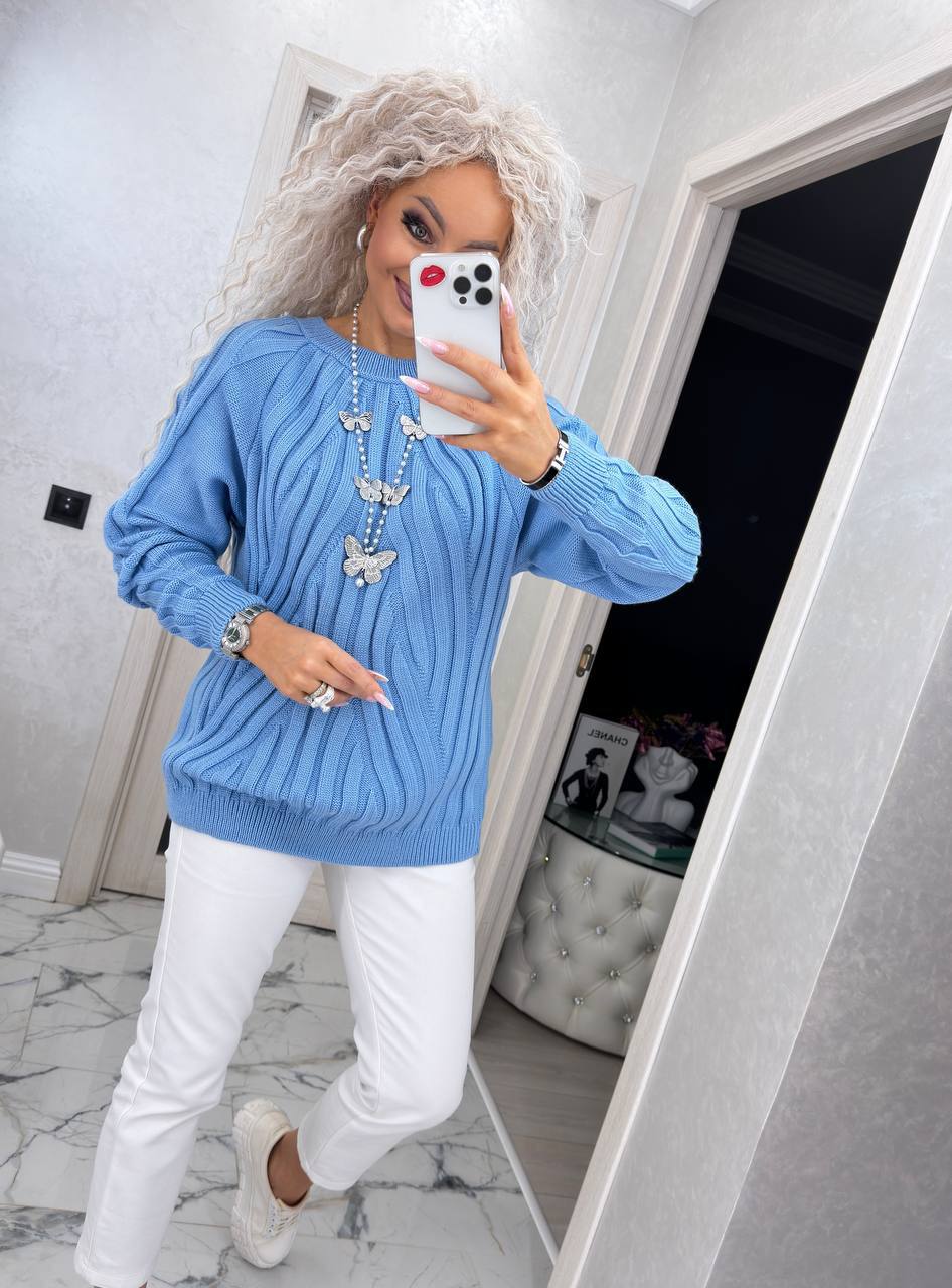 Будьте первым, кто оставил отзыв на “Свитер с фигурной вязкой голубой”
