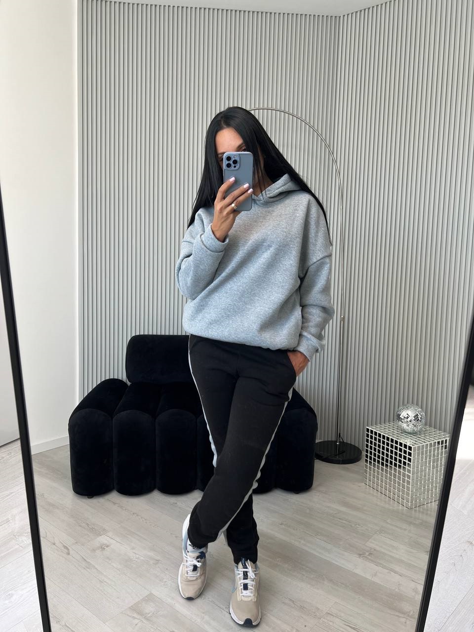 Теплый костюм трехнитка на флисе (кофта с капюшоном+брюки с лампасами) серый+черный