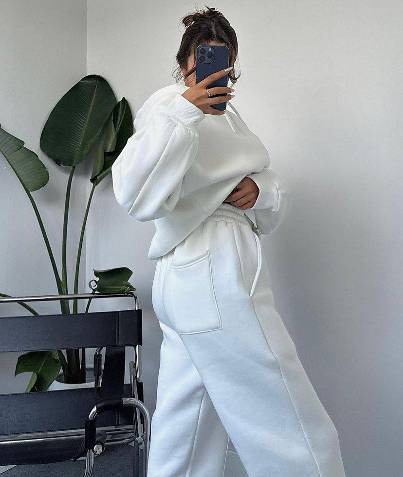 Головна » Магазин » ОДЕЖДА » ЖЕНСКИЕ СПОРТИВНЫЕ КОСТЮМЫ » Теплый спортивный костюм (укороченная кофта на молнии с капюшоном+штаны с карманами сзади) белый