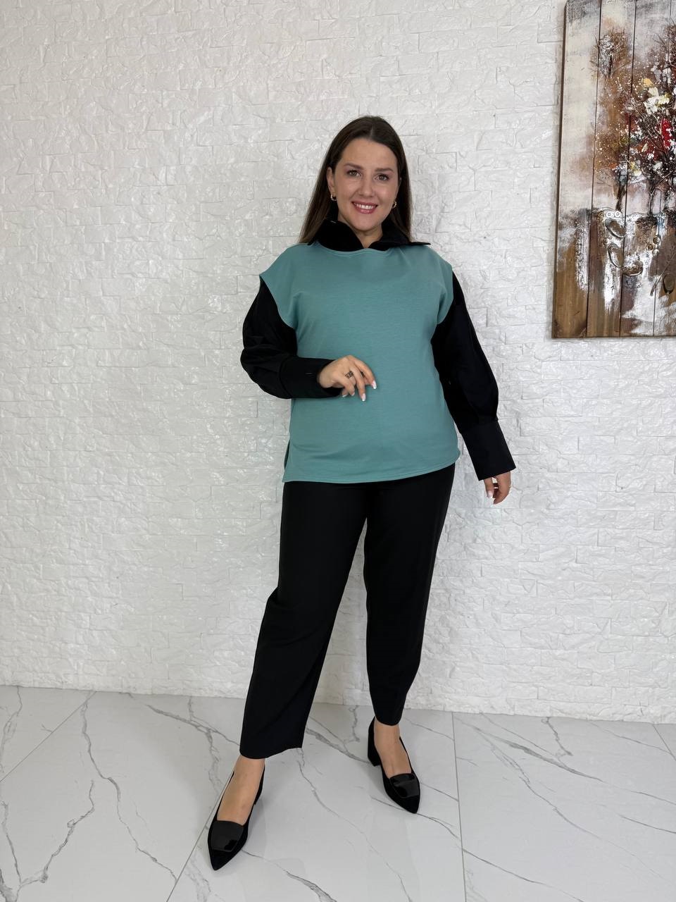 Можно носить с рубашкой, свитером, лонгсливом, футболкой