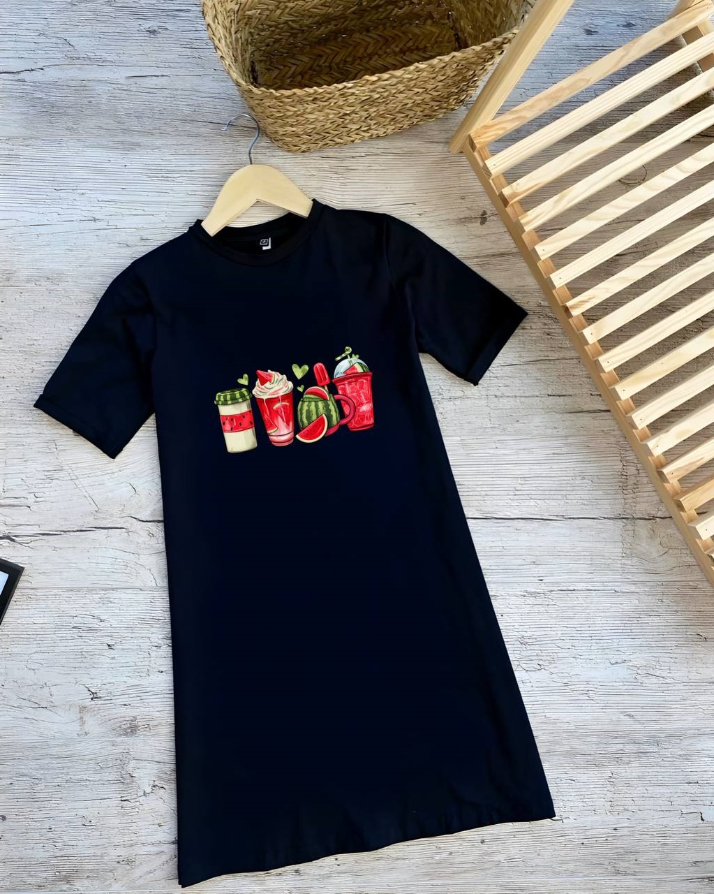 Головна » Магазин » ОДЕЖДА » ПЛАТЬЯ ТУНИКИ САРАФАНЫ » Трикотажное платье-футболка принт ВКУС АРБУЗА черный