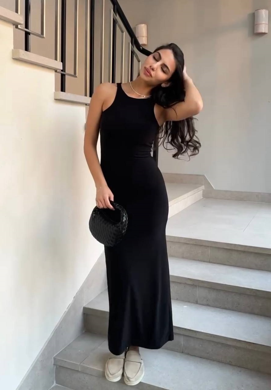 Головна » Магазин » ОДЕЖДА » ПЛАТЬЯ ТУНИКИ САРАФАНЫ » Трикотажное платье-майка по фигуре длиной макси черный