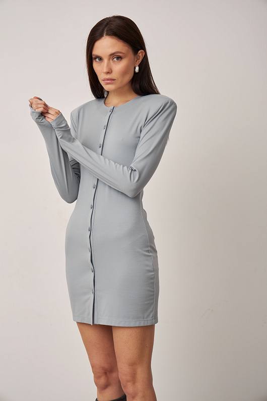 Трикотажное платье по фигуре на пуговицах прямого кроя длиной мини серый