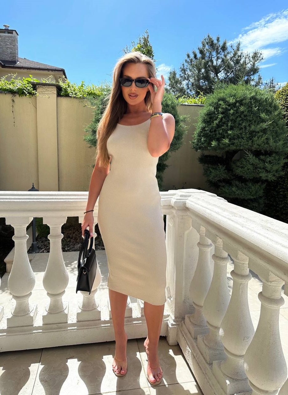 Трикотажное платье по фигуре с круглой горловиной бежевый