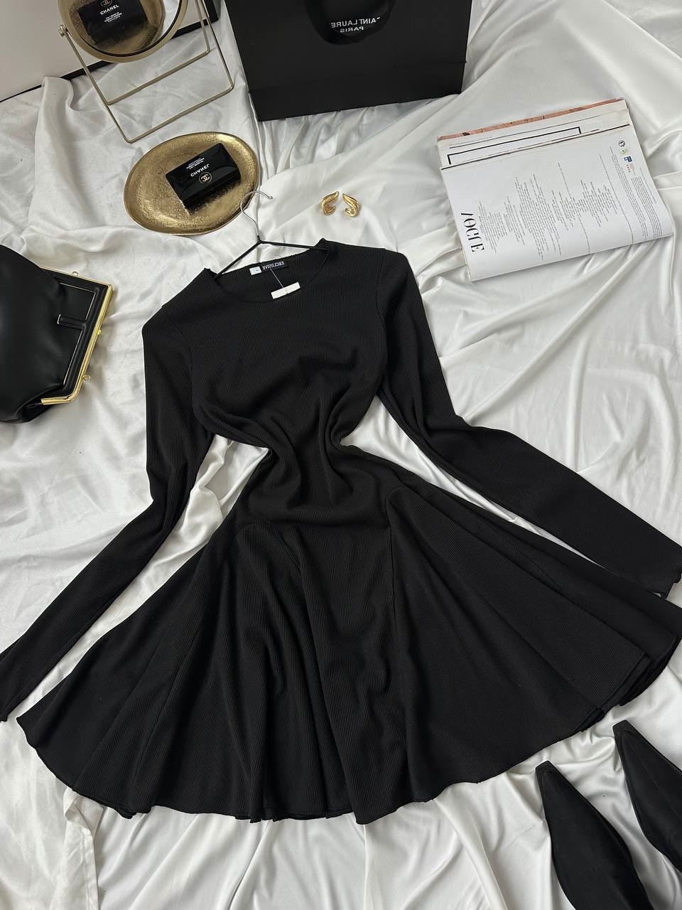 Трикотажное платье с расклешенной юбкой с воланами длиной мини черный