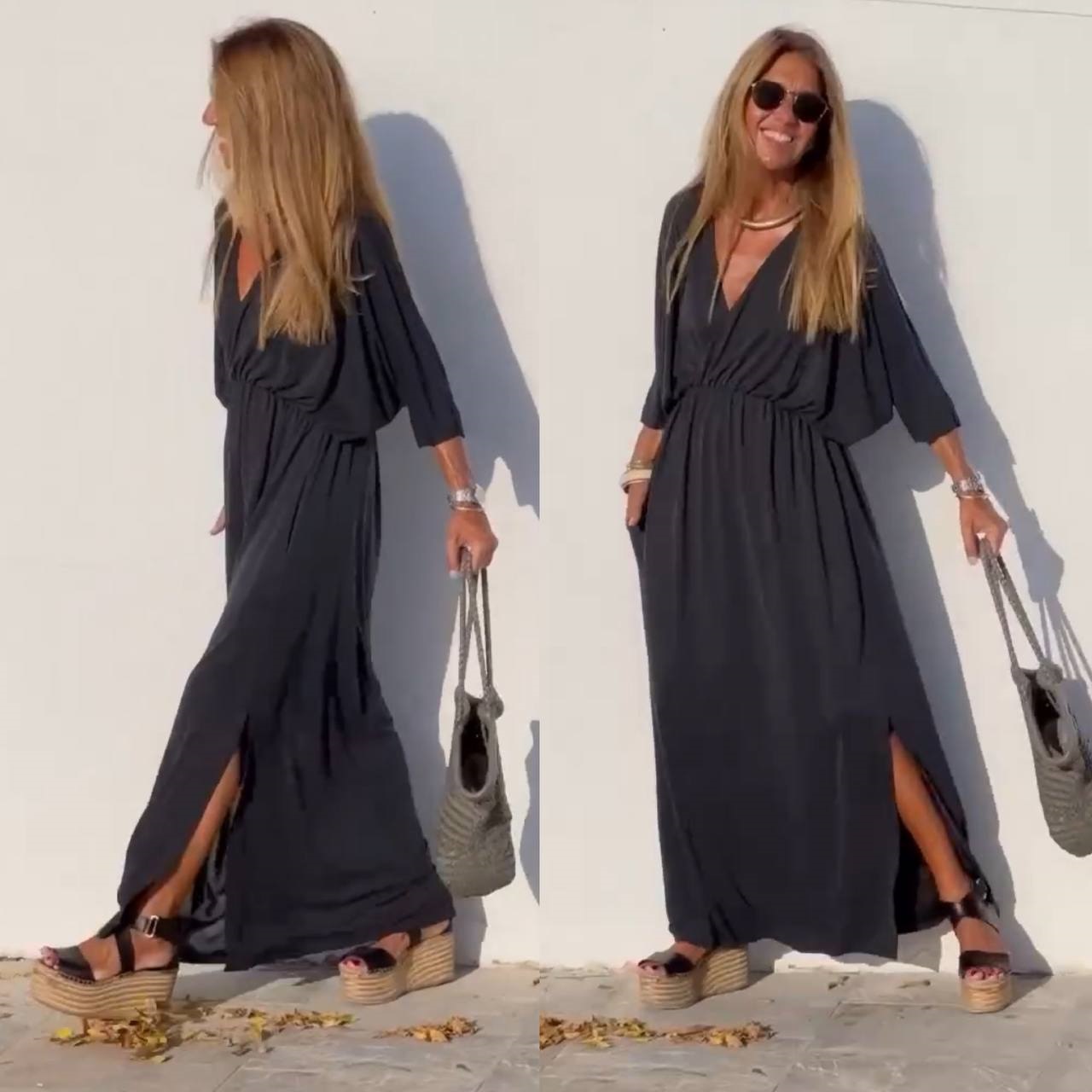 Головна » Магазин » ОДЕЖДА » ПЛАТЬЯ ТУНИКИ САРАФАНЫ » Трикотажное платье свободного кроя с запахом по груди+разрезом по ножке графит