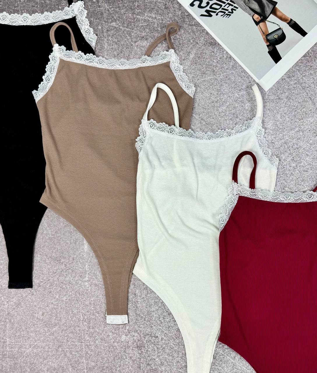 Изящное и женственное боди с кружевом. Материал — вискоза в дышащий рубчик, приятная к телу и эластичная.