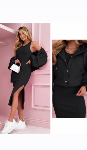Головна » Магазин » ОДЕЖДА » ЖЕНСКИЕ КОСТЮМЫ » Трикотажный костюм (бомбер+платье по фигуре с разрезом по ножке без рукавов) черный