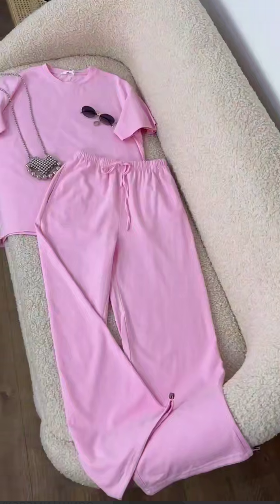 Головна » Магазин » ОДЕЖДА » ЖЕНСКИЕ СПОРТИВНЫЕ КОСТЮМЫ » Трикотажный костюм двухнитка (футболка+свободные брюки) розовый