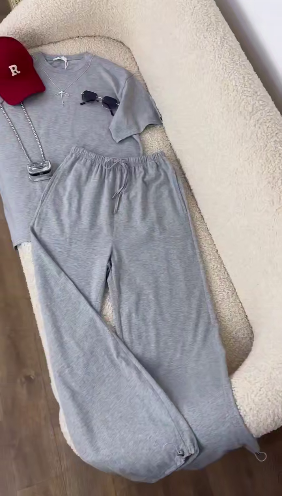 Головна » Магазин » ОДЕЖДА » ЖЕНСКИЕ СПОРТИВНЫЕ КОСТЮМЫ » Трикотажный костюм двухнитка (футболка+свободные брюки) серый
