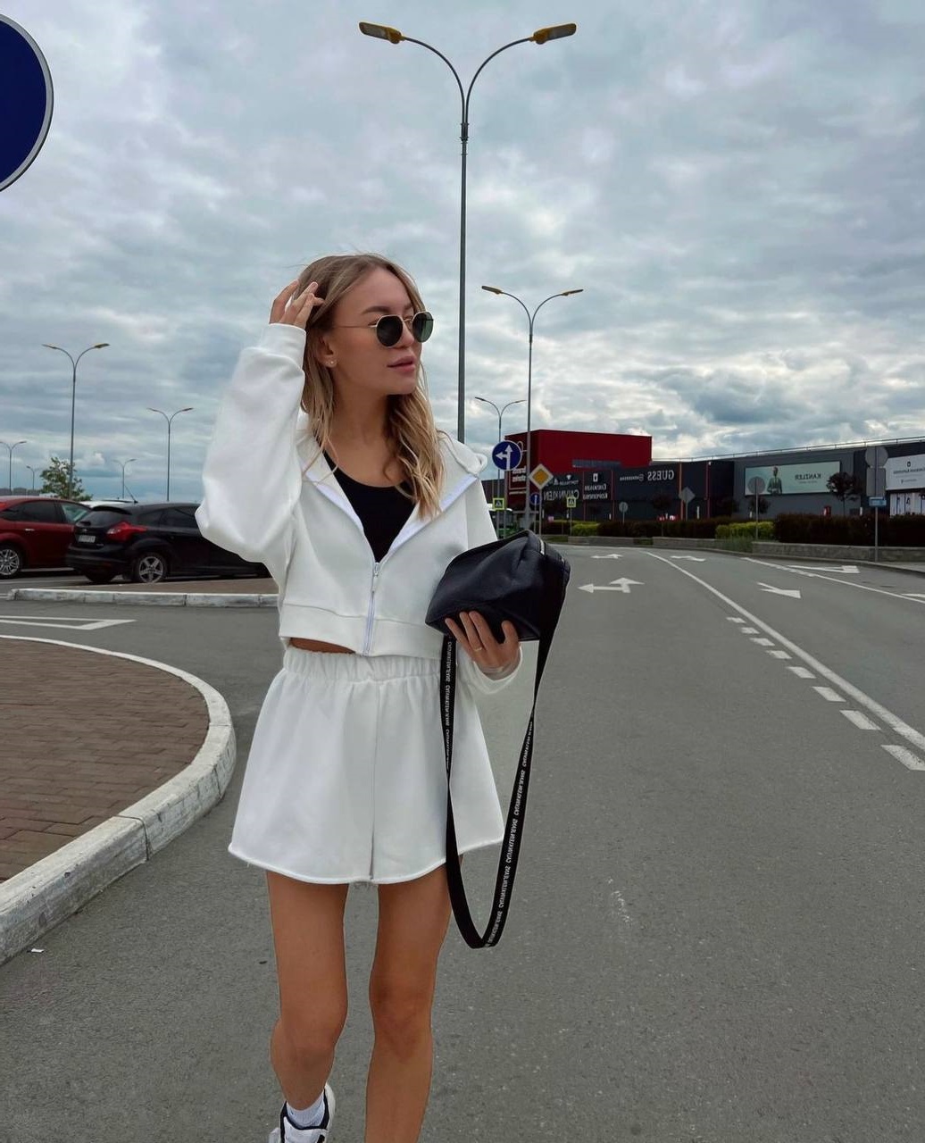 Трикотажный костюм (кофта с двойным капюшоном+шорты) белый