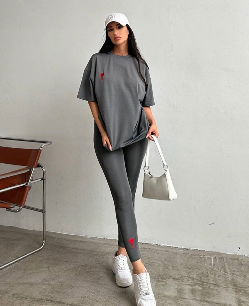 Удобный костюм с футболкой и лосинами+качественная вышивка графит